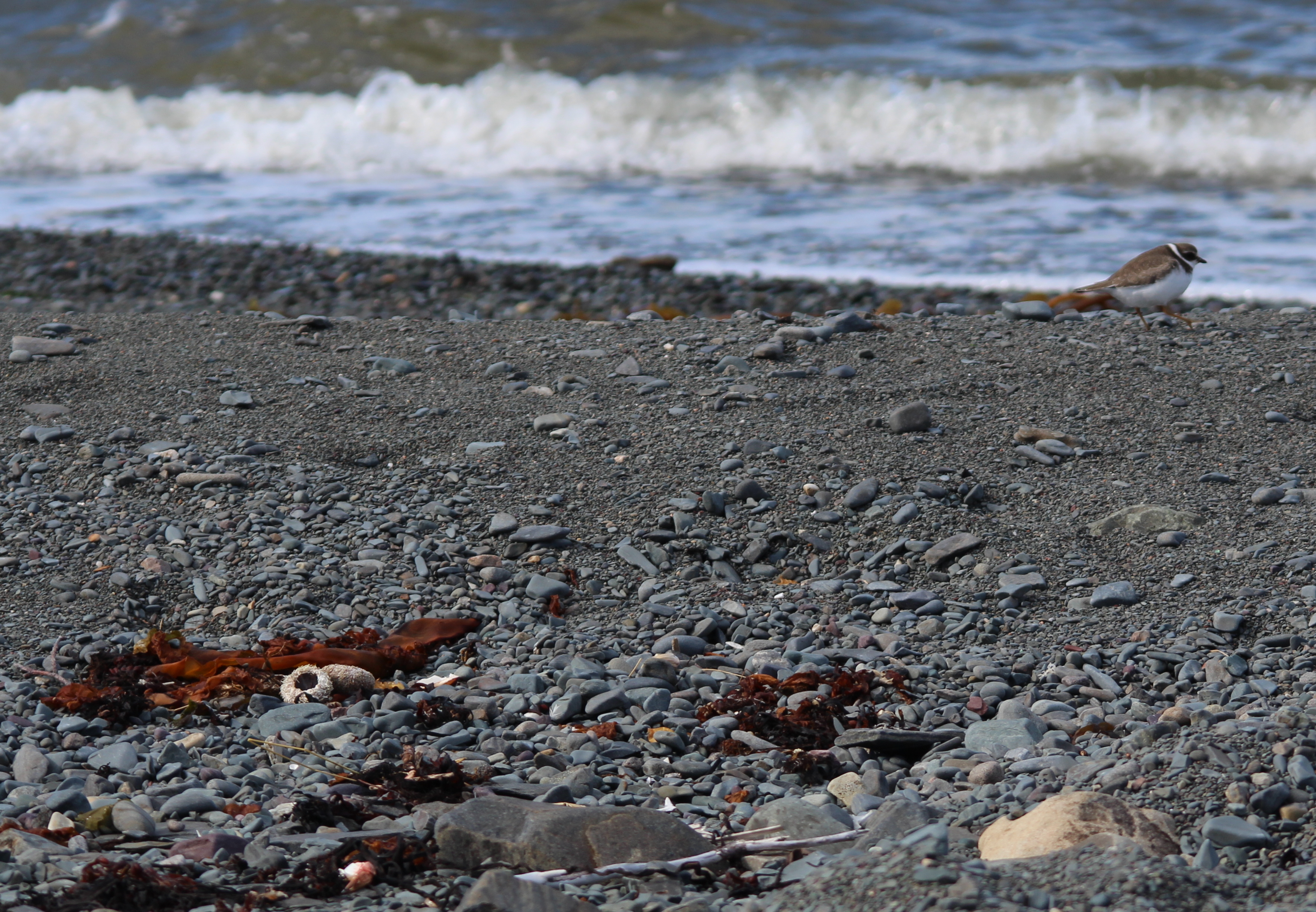 As I sat in my Jeep on a drizzly day in English Harbour, window down so the sound of the waves could reach me, I spied this lonely semi-palmated plover snatching his lunch on the shoreline. His plump little frame scooted around, and his head bobbed up and down, one eye on me, and one eye on his feed. We were momentary companions, each checking the other out, each feeling safe in their little world, each letting the other “do their thing”.