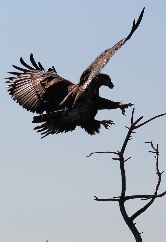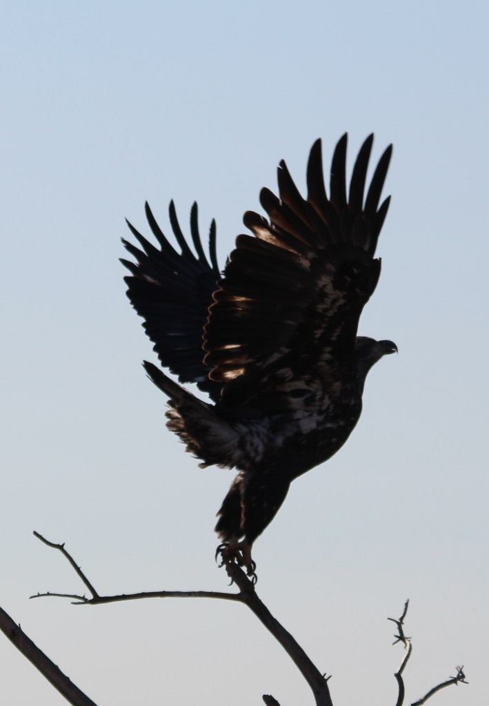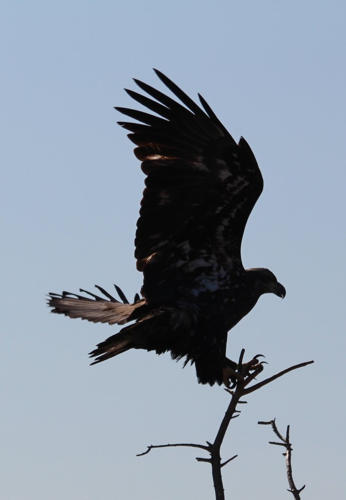 Though owls are my true favourite, I always enjoy the eagles I see here. Last year at this spot, I enjoyed watching a family of 4, two parents and two juveniles. This day, I only saw the one juvenile.