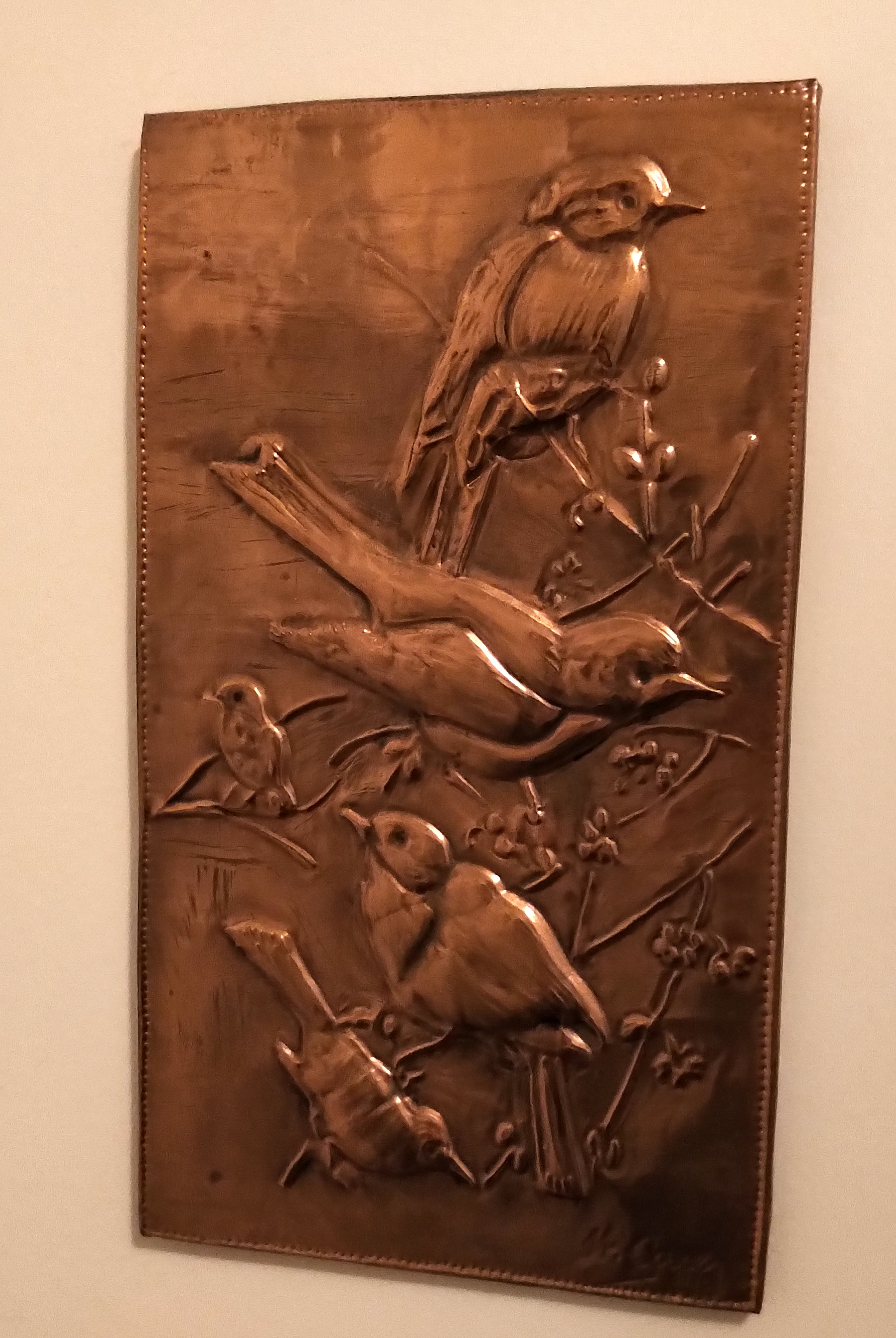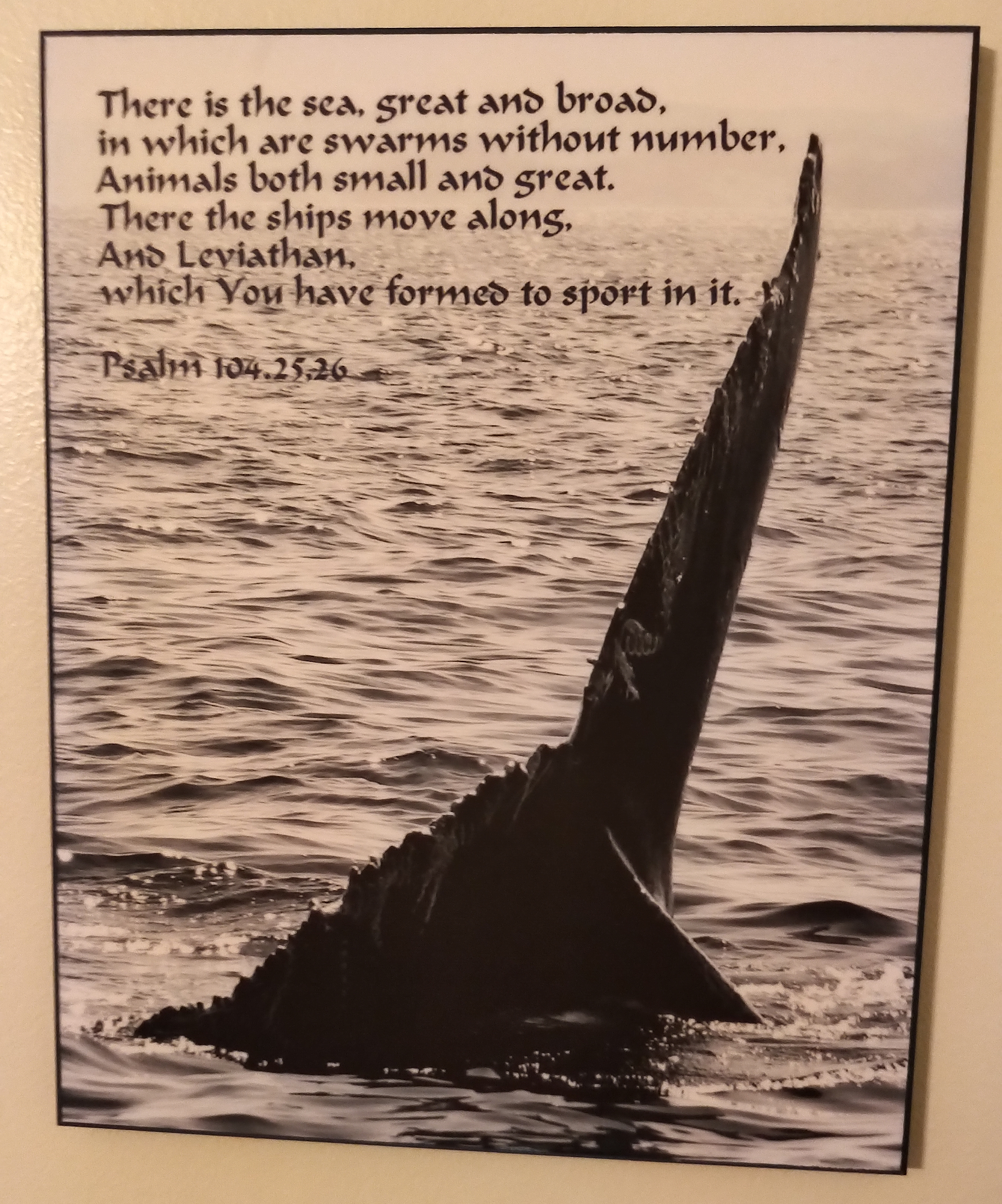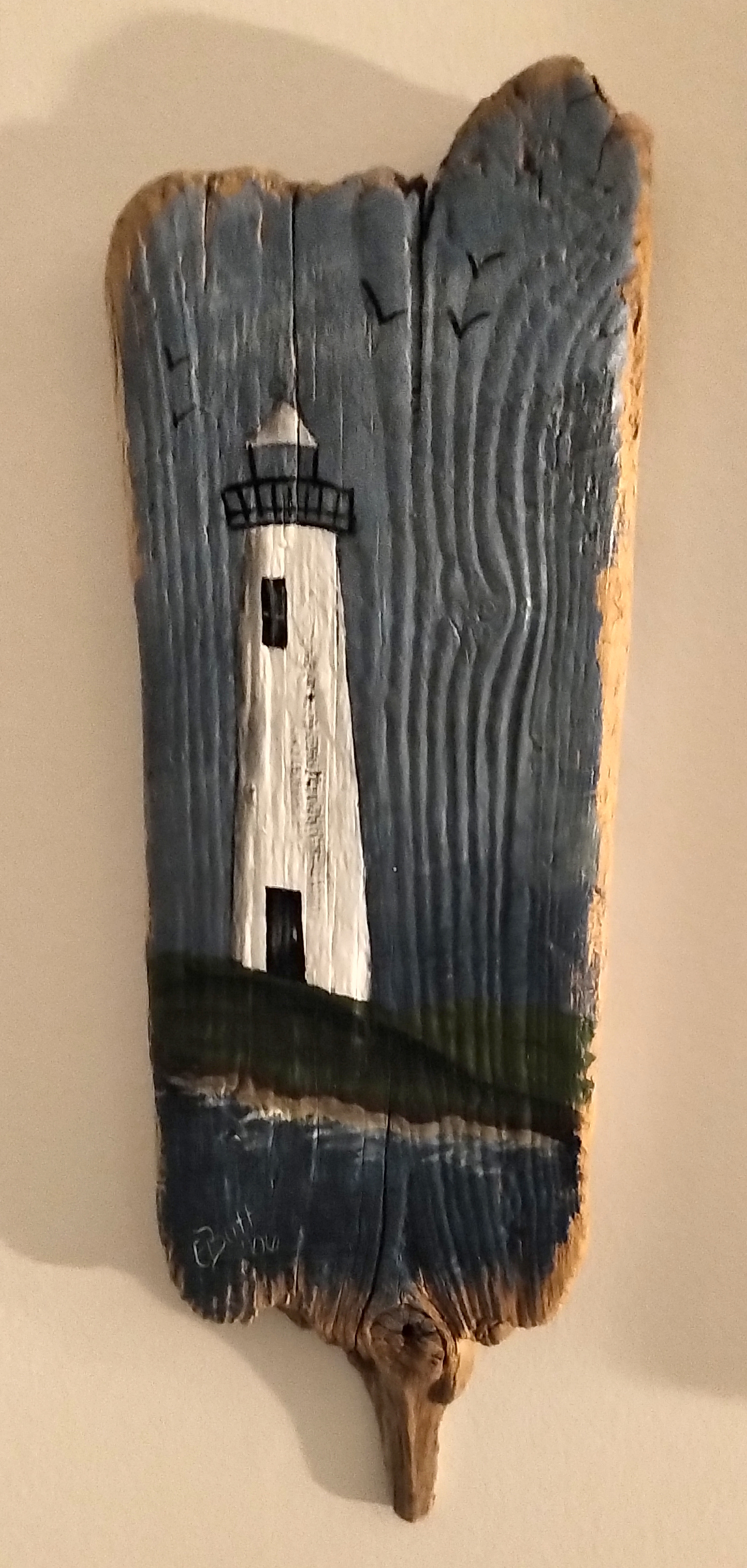 This stained glass piece was commissioned by me from a lovely glass shop in Chapel Arm, which sadly is no longer there. It depicts all my favourite things – seagulls soaring above the waves, icebergs, whale tails and of course the proverbial lighthouse.