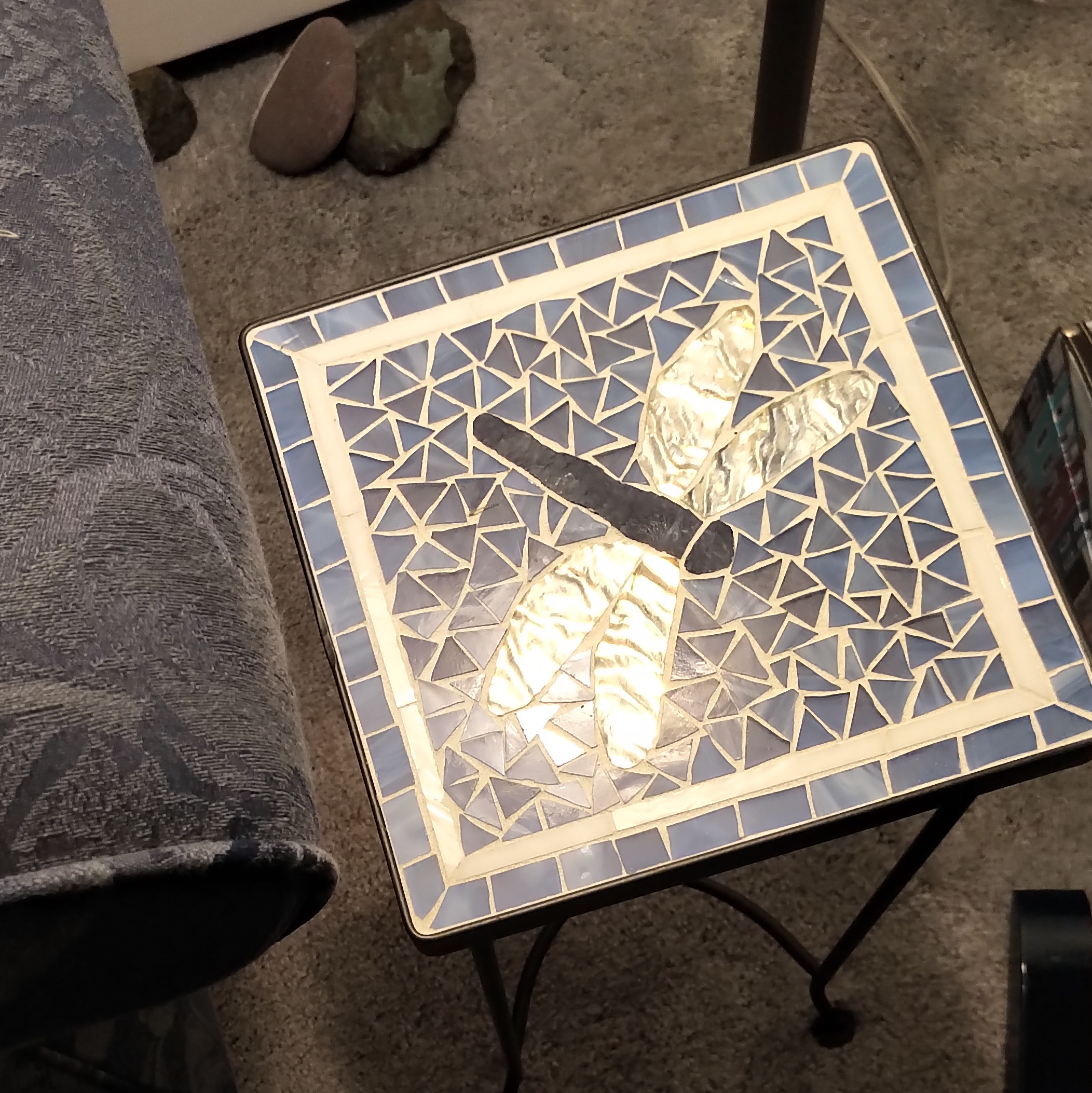 The living room is also blue and white, with many books to choose from, wonderful dimmer lighting, and comfy furniture for a nap or a read. The dolphin box I managed to buy from Creative World in Clarenville at half-price, and stores all manner of maps, hiking books and tourist info for the wanna-be wanderer…