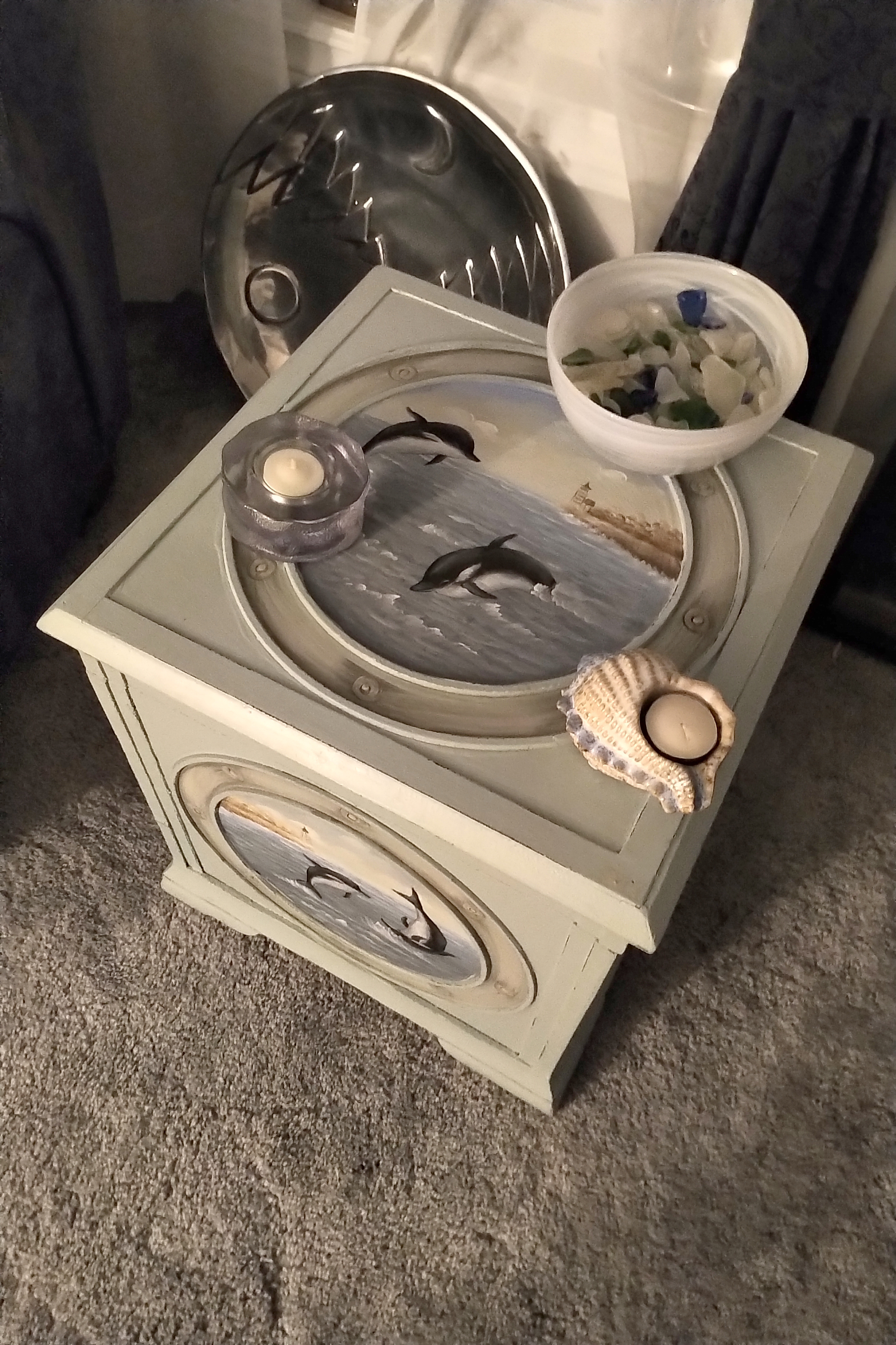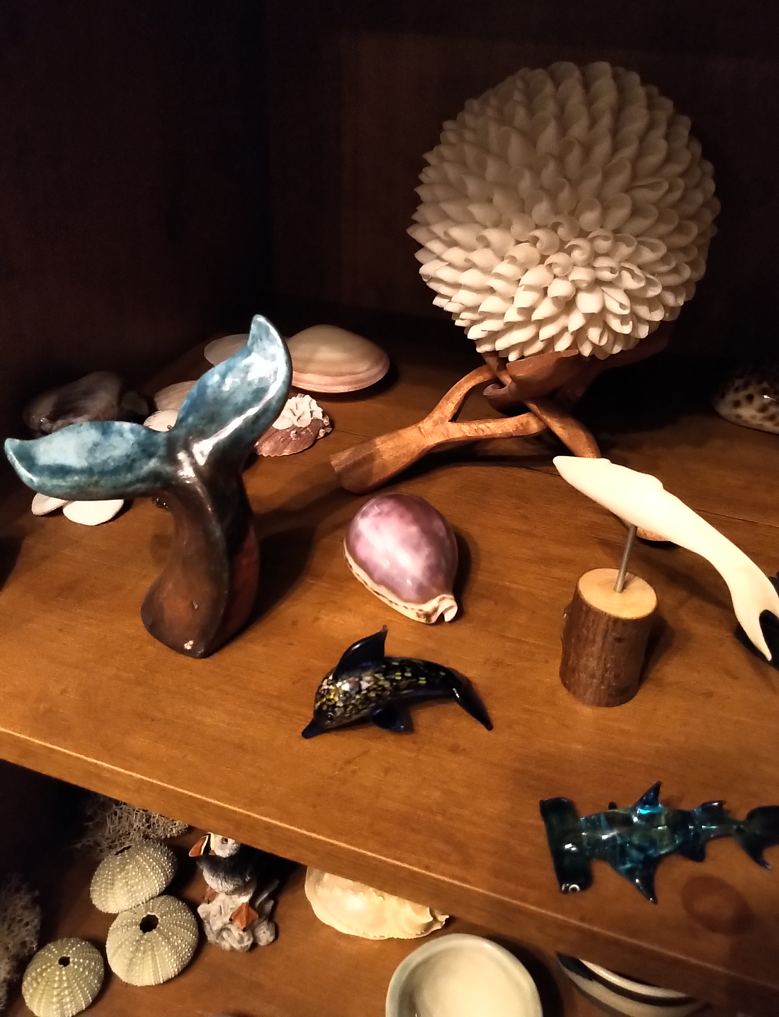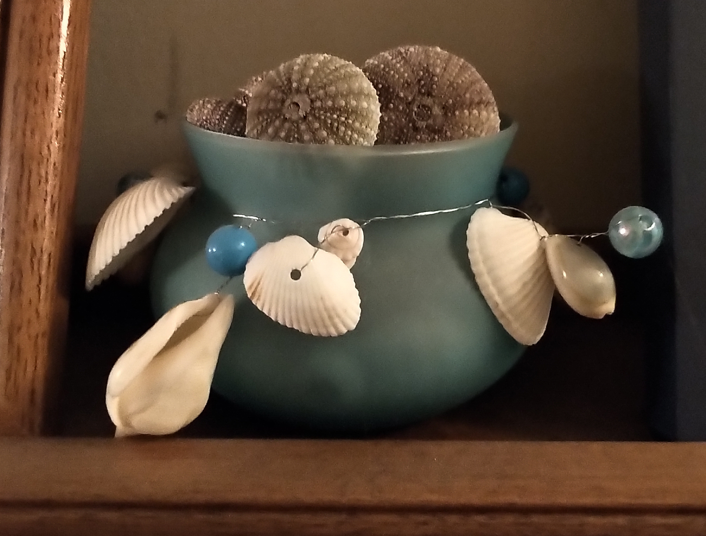 When I view the handmade items, I can recall, usually, from which shoreline the shells or seaglass were retrieved, or how I finished a hike with pockets bulging full of “osie eggs”, driftwood, cork floats, windblown feathers, unique beach rocks, etc. and love to remember who was with me at the time, if anyone – special moments with Mom, which dog was playing at my side or a quiet moment with my own thoughts in the sea air.