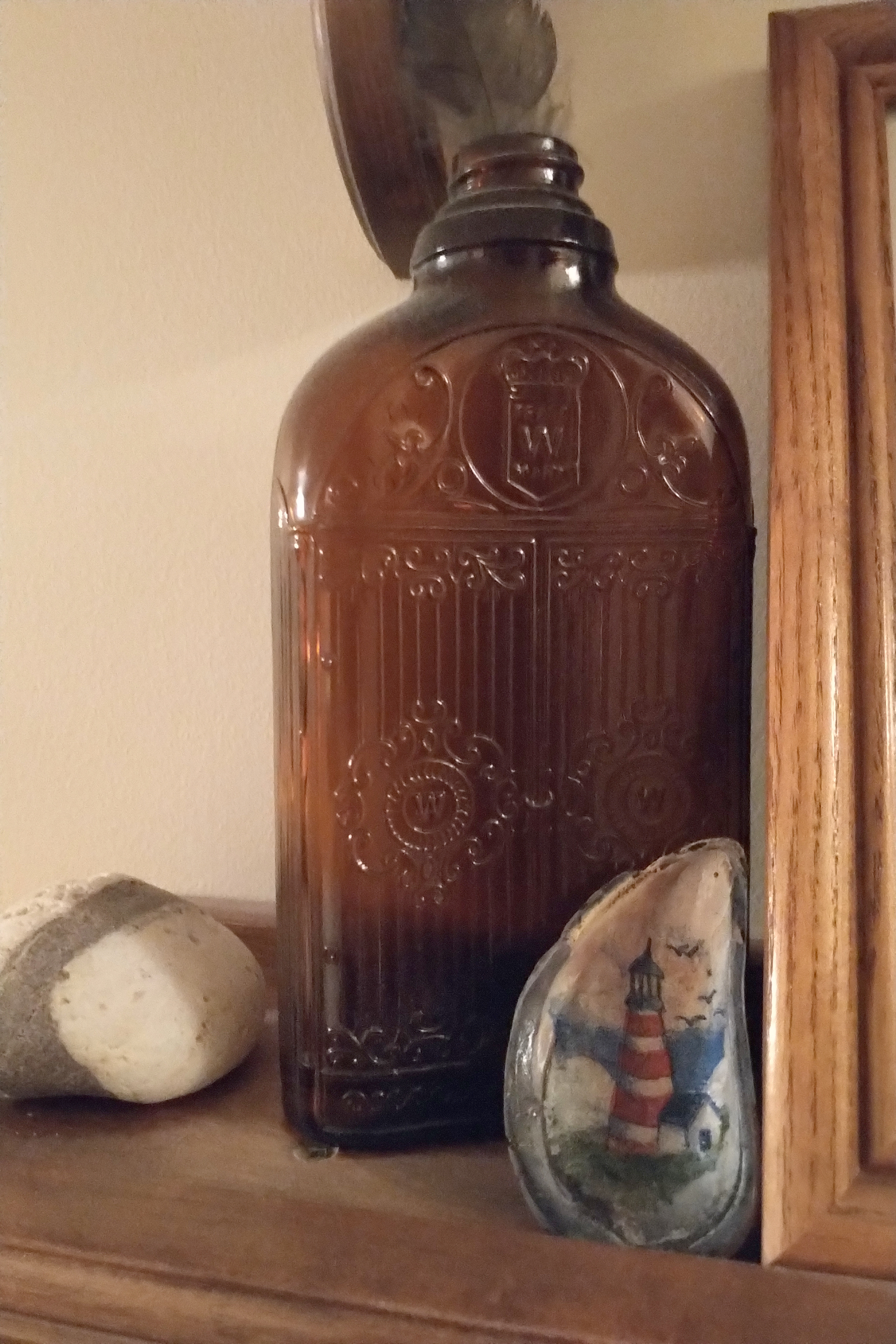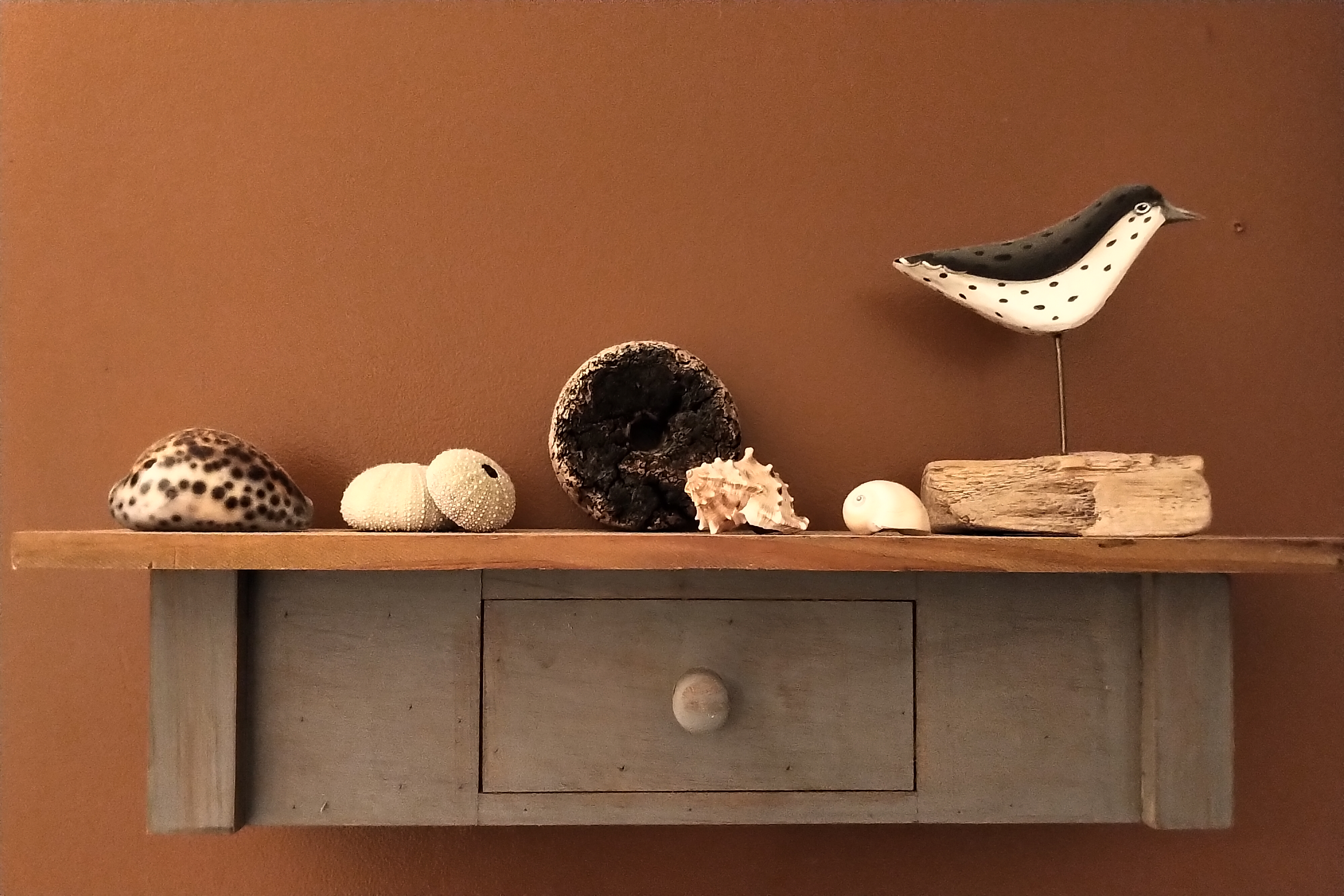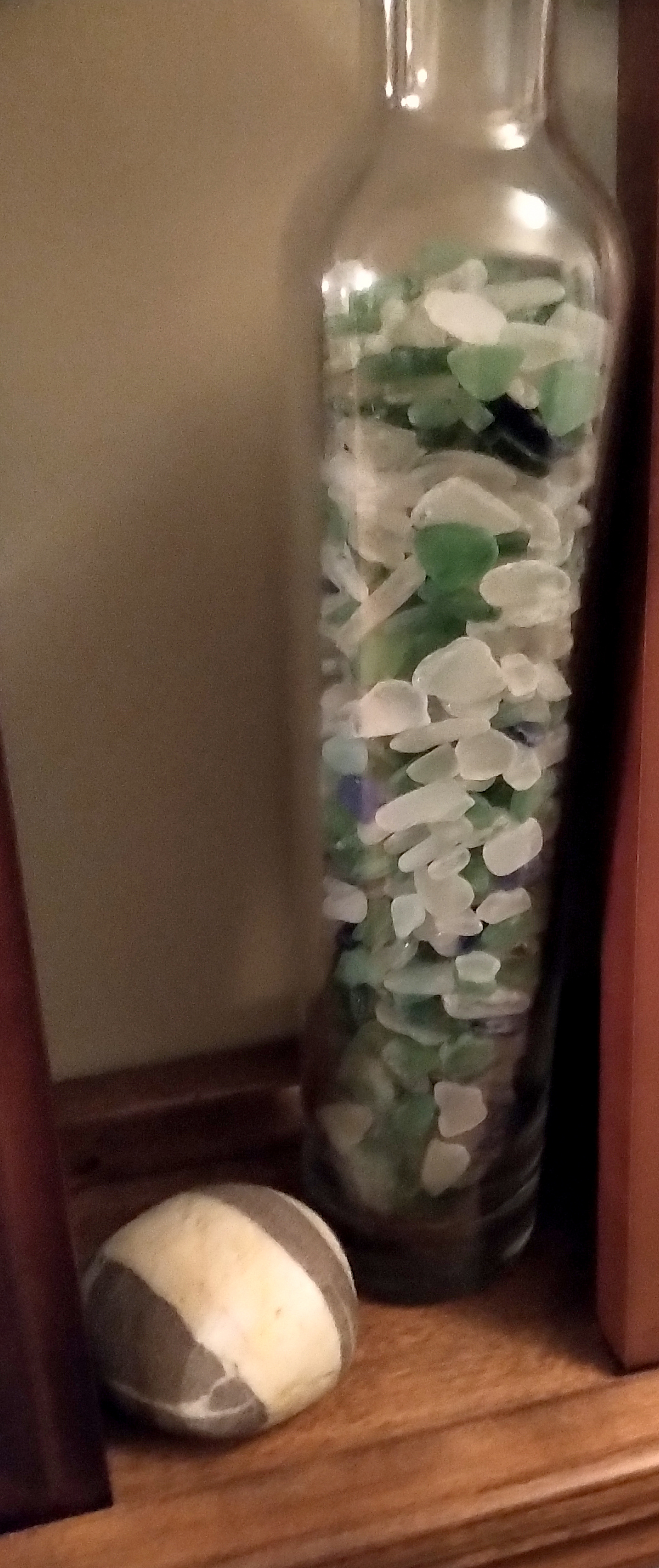 When I view the handmade items, I can recall, usually, from which shoreline the shells or seaglass were retrieved, or how I finished a hike with pockets bulging full of “osie eggs”, driftwood, cork floats, windblown feathers, unique beach rocks, etc. and love to remember who was with me at the time, if anyone – special moments with Mom, which dog was playing at my side or a quiet moment with my own thoughts in the sea air.