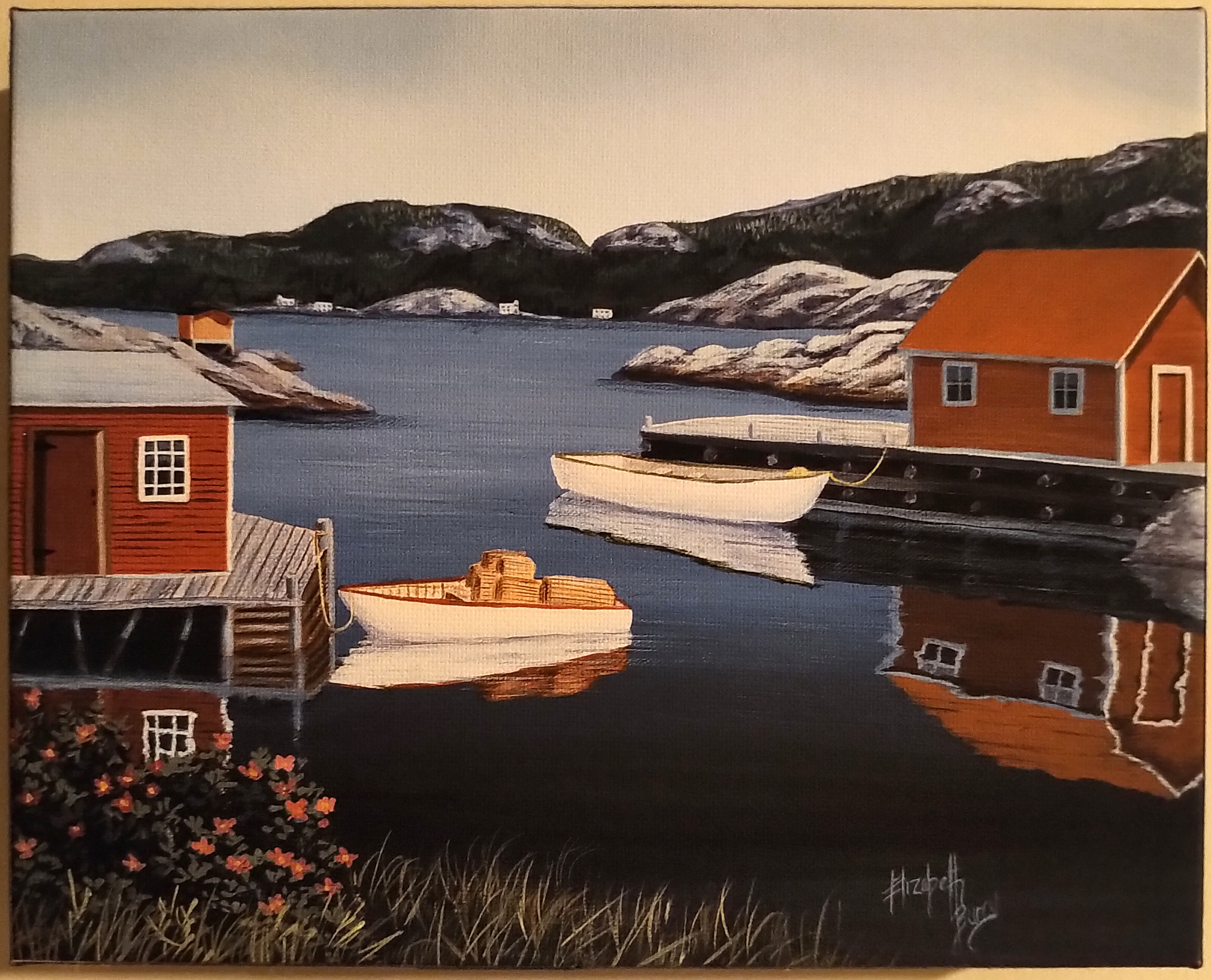 Or this one Mom bought for me as a birthday gift, of a delightful scene in Salvage, another of our favourite hiking places, painted by Elizabeth Burry, who has a lovely studio shop in Trinity.