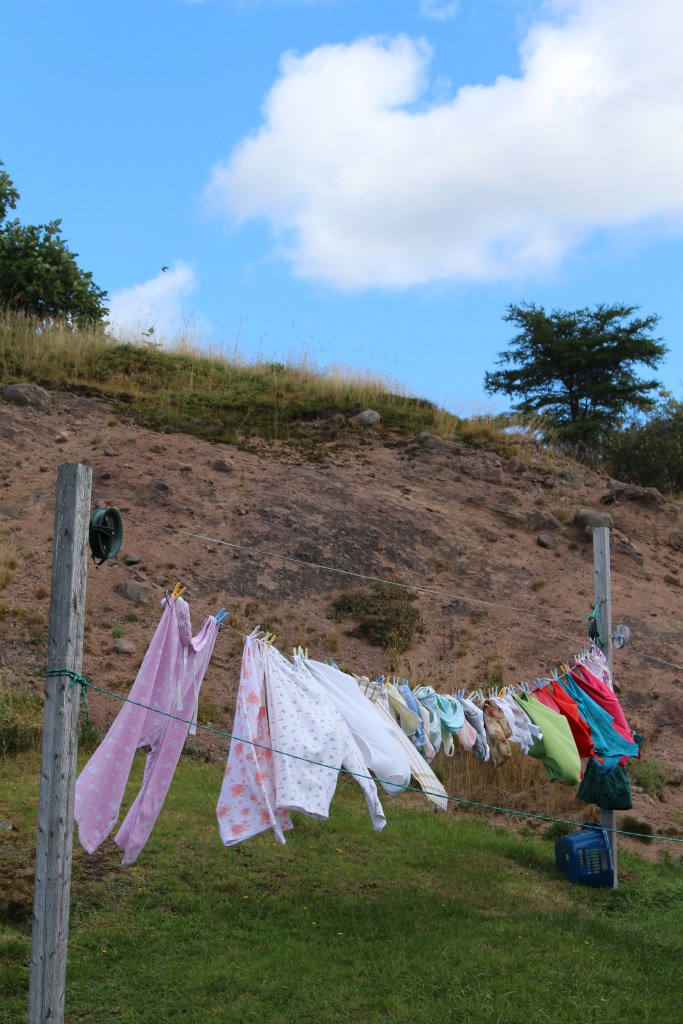 Laundry … October 31, 2020 ~ sbtsea Newfoundlanders, more than any others I know, take advantage of those sea breezes to air their laundry. But know this … clothing may not be the only thing you spot on the line – multitaskers they are! Share this: Click to share on X (Opens in new window) X Click to share on Facebook (Opens in new window) Facebook Like Loading...
