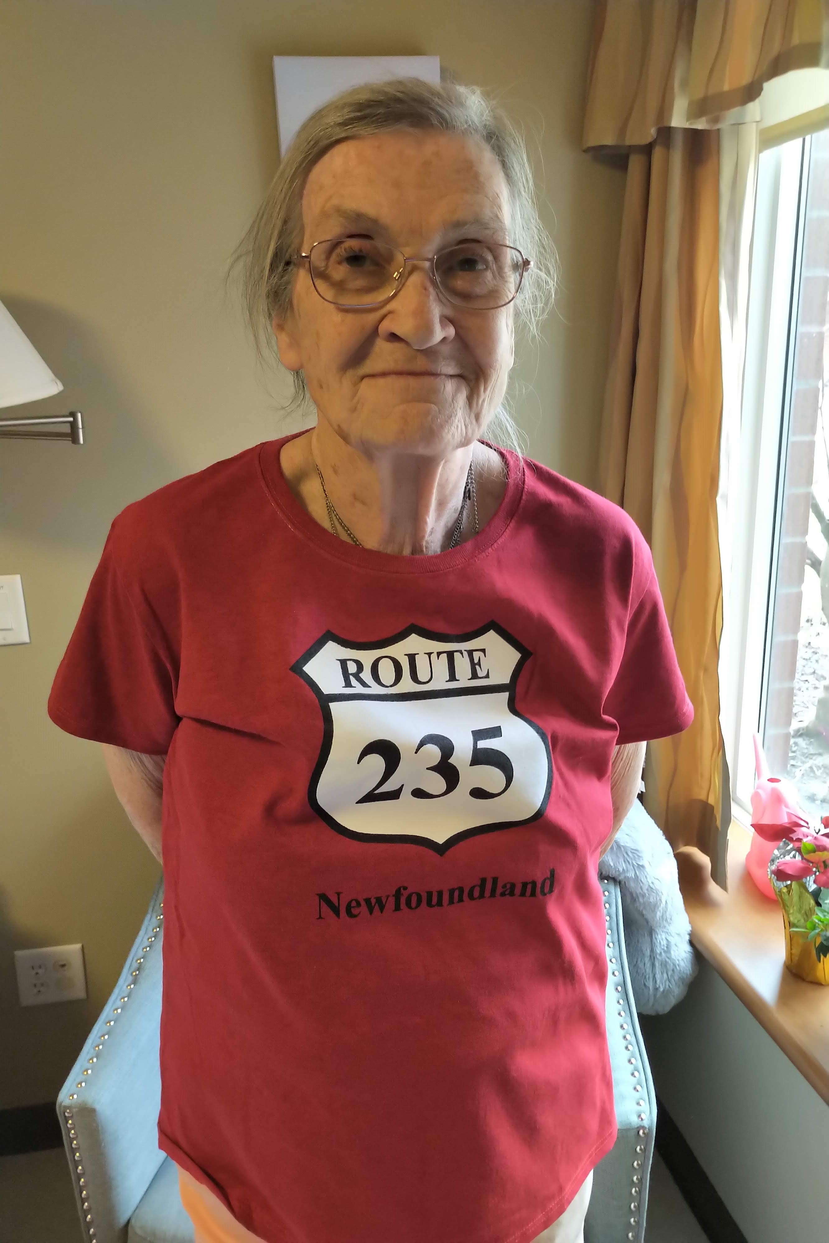 And so it warms my heart to see her sporting her Route 235 shirt – she loved that drive with all her favourite places – Tickle Cove, Keels, King’s Cove, stopping in to see our friends at Round Da Bay Inn, and my “highly smiley” shirt is a poor comparison to the genuine smiles she always shared with everyone.