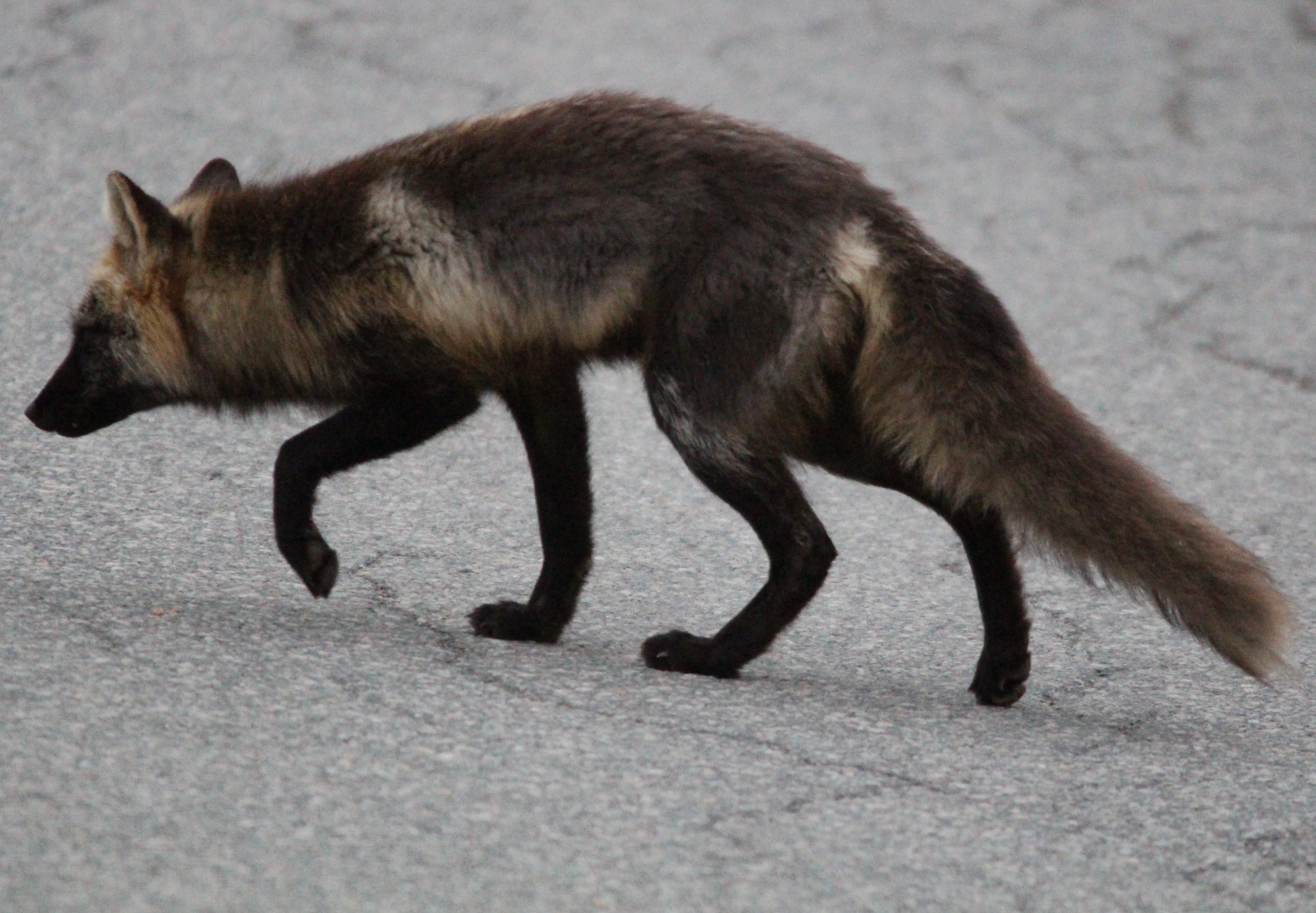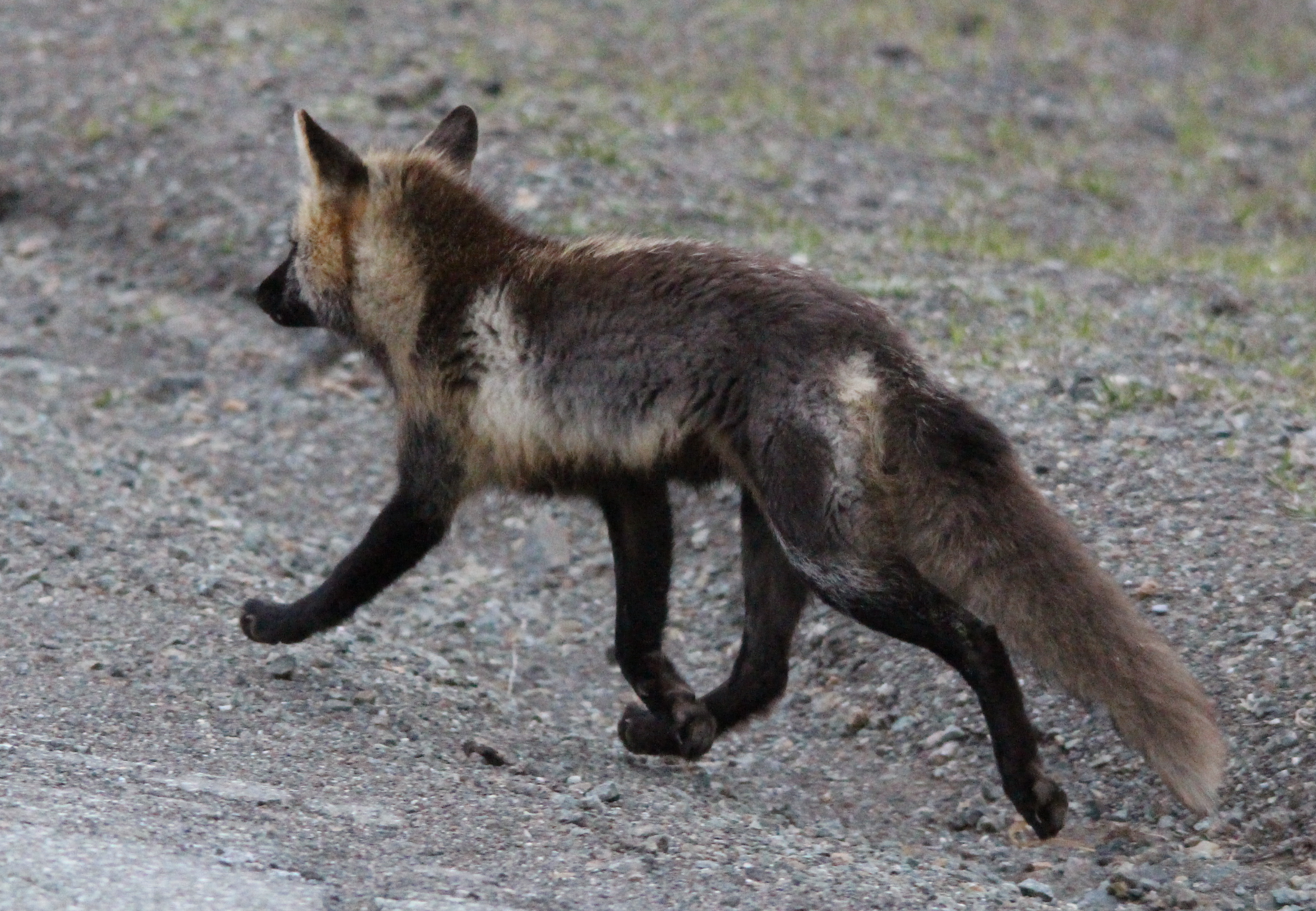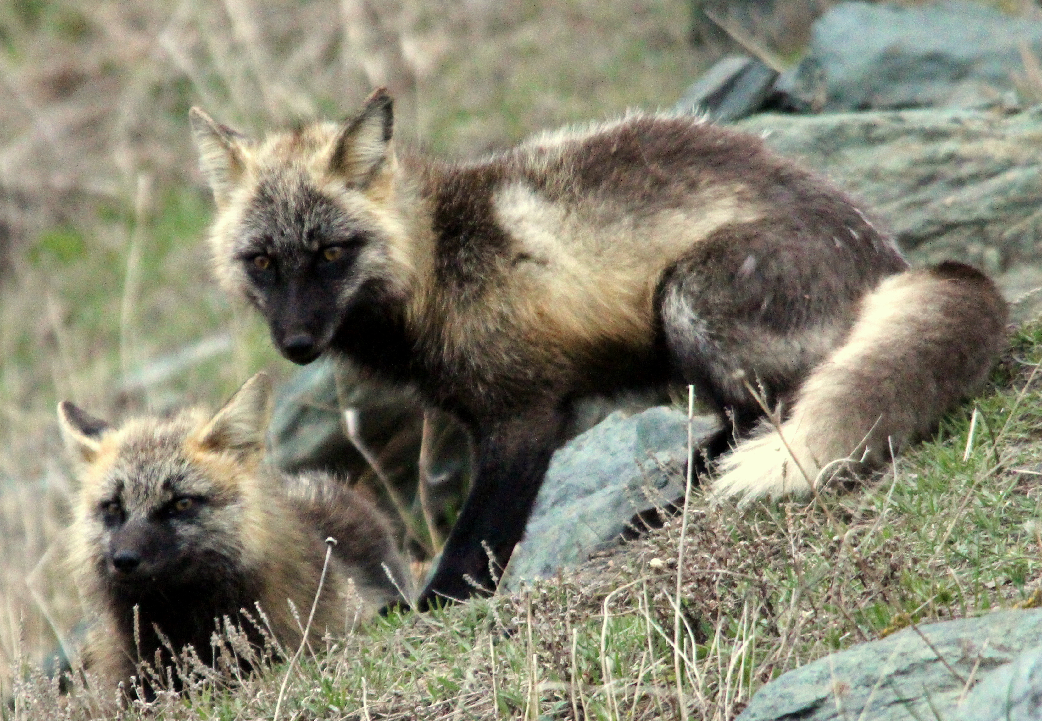 Often a drive in the evening will find you a moose or a fox (though less likely now than in the early years). Mom and I enjoyed seeing this pair one evening outside their den, off the Crow Head Road up to the lighthouse in Twillingate. They were not the least disturbed at our presence, and it was thrilling to watch them for a long time, grooming each other, resting, play-fighting and their curiosity of us without fear. Most of the foxes we see here are crosses – various colourings, rarely full red as those we see back in Ontario.