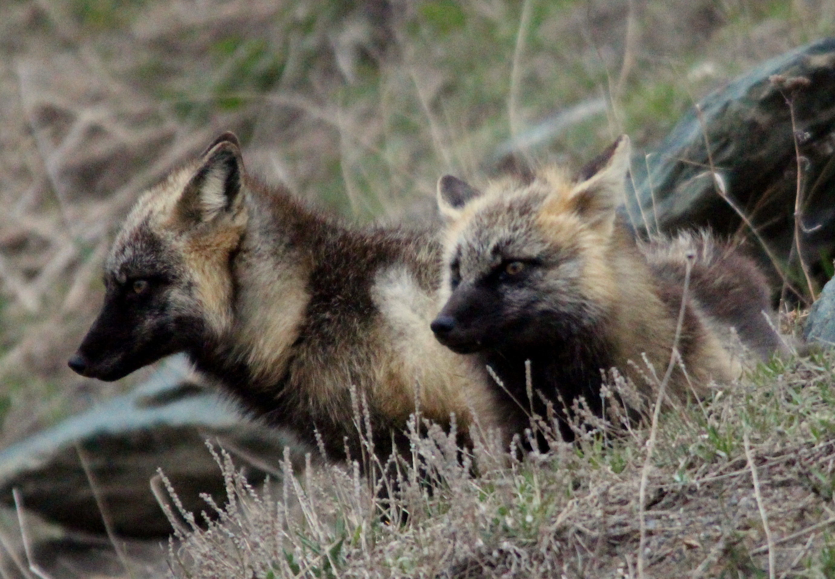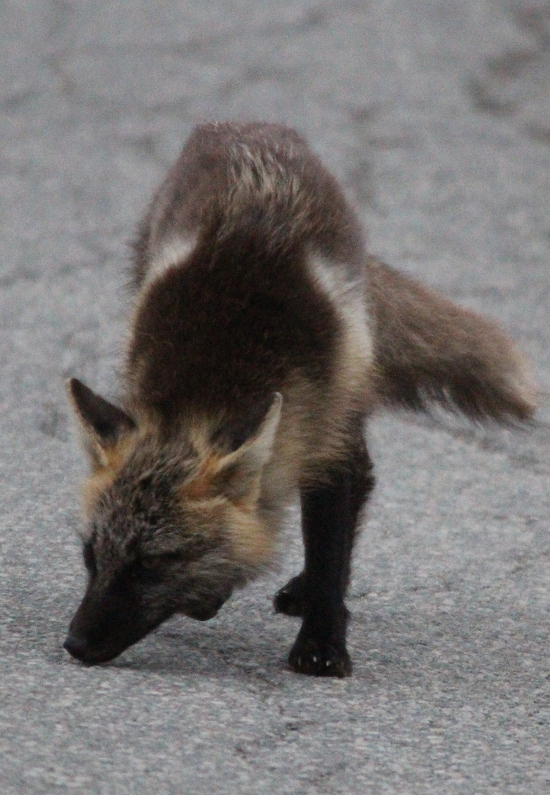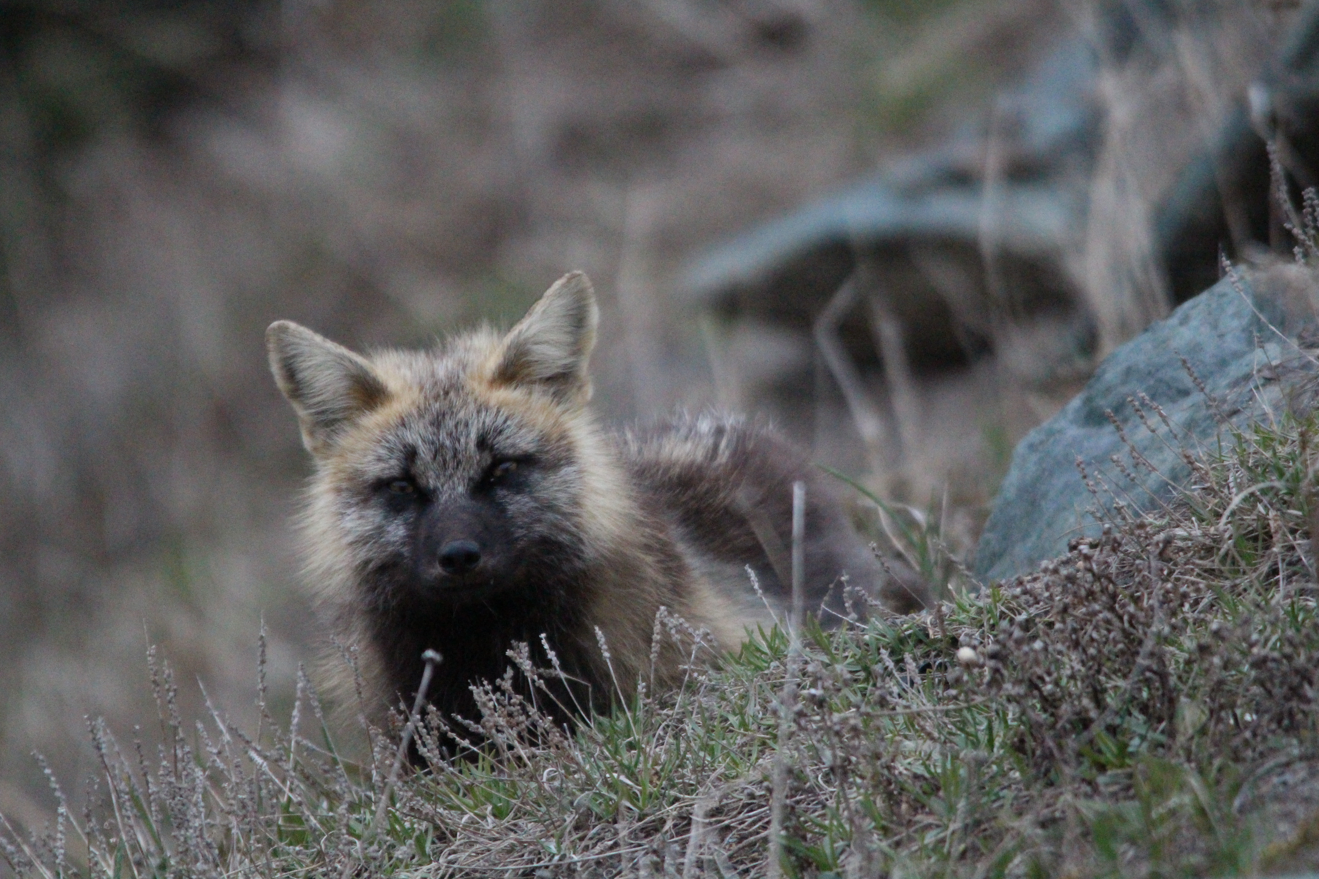 Often a drive in the evening will find you a moose or a fox (though less likely now than in the early years). Mom and I enjoyed seeing this pair one evening outside their den, off the Crow Head Road up to the lighthouse in Twillingate. They were not the least disturbed at our presence, and it was thrilling to watch them for a long time, grooming each other, resting, play-fighting and their curiosity of us without fear. Most of the foxes we see here are crosses – various colourings, rarely full red as those we see back in Ontario.