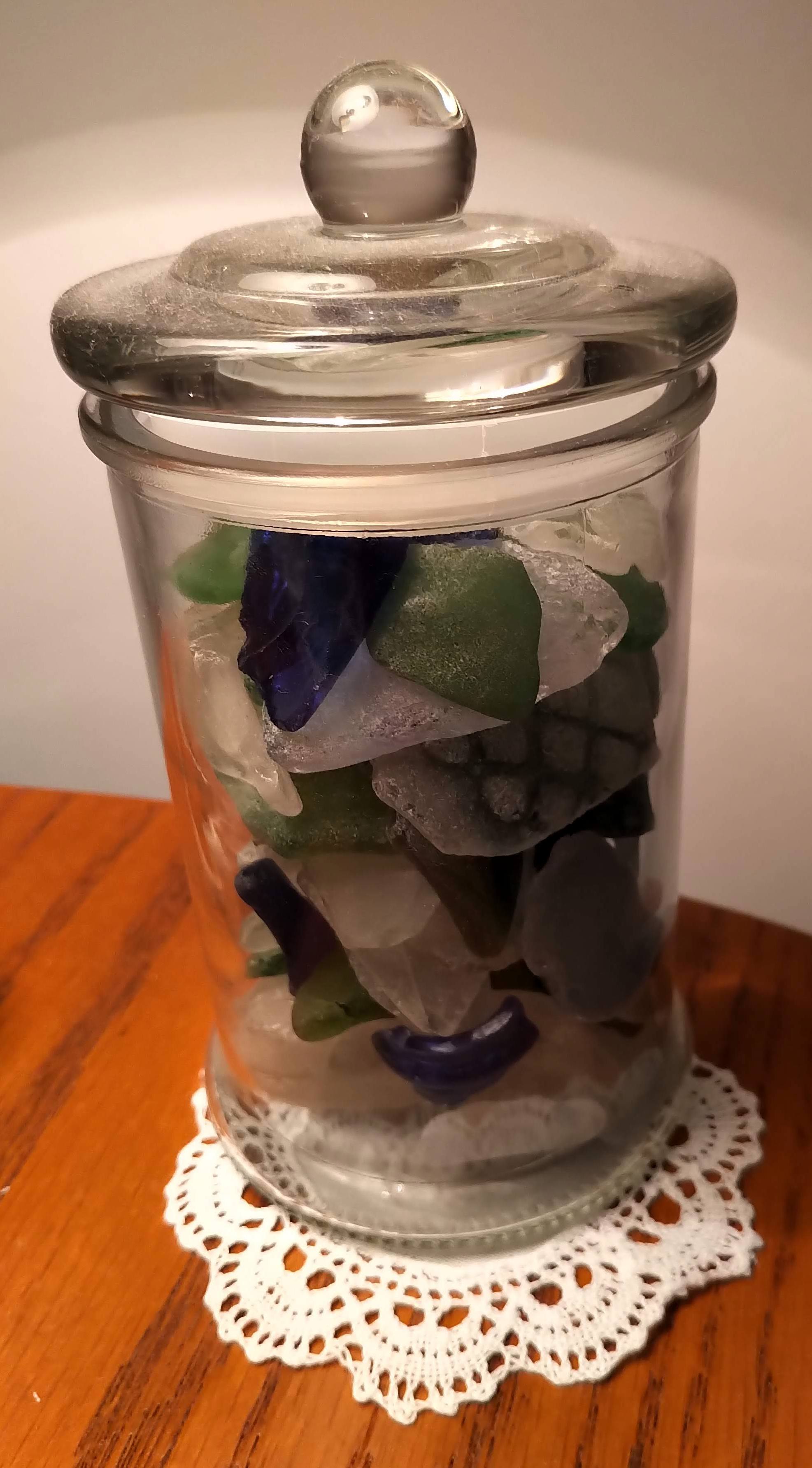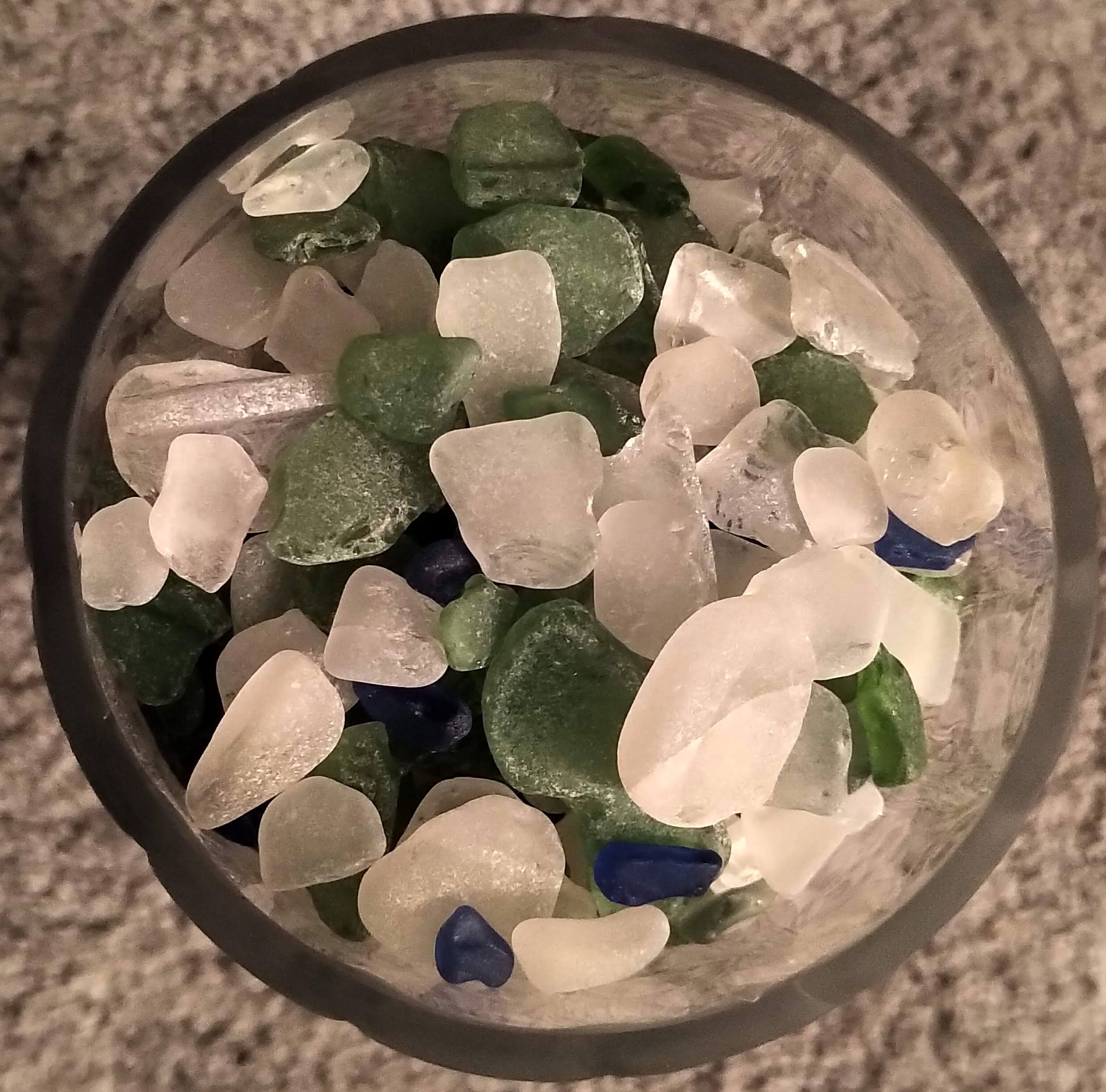 “Broken glass both sharp and fragile surviving rip tides and travelling depths unknown. Shattered. Abandoned. Exiled in icy waters – tumbling until the jagged edges soften, polished in a way that could never be achieved on its own. Transformed by time and hardship, into something beautiful.”