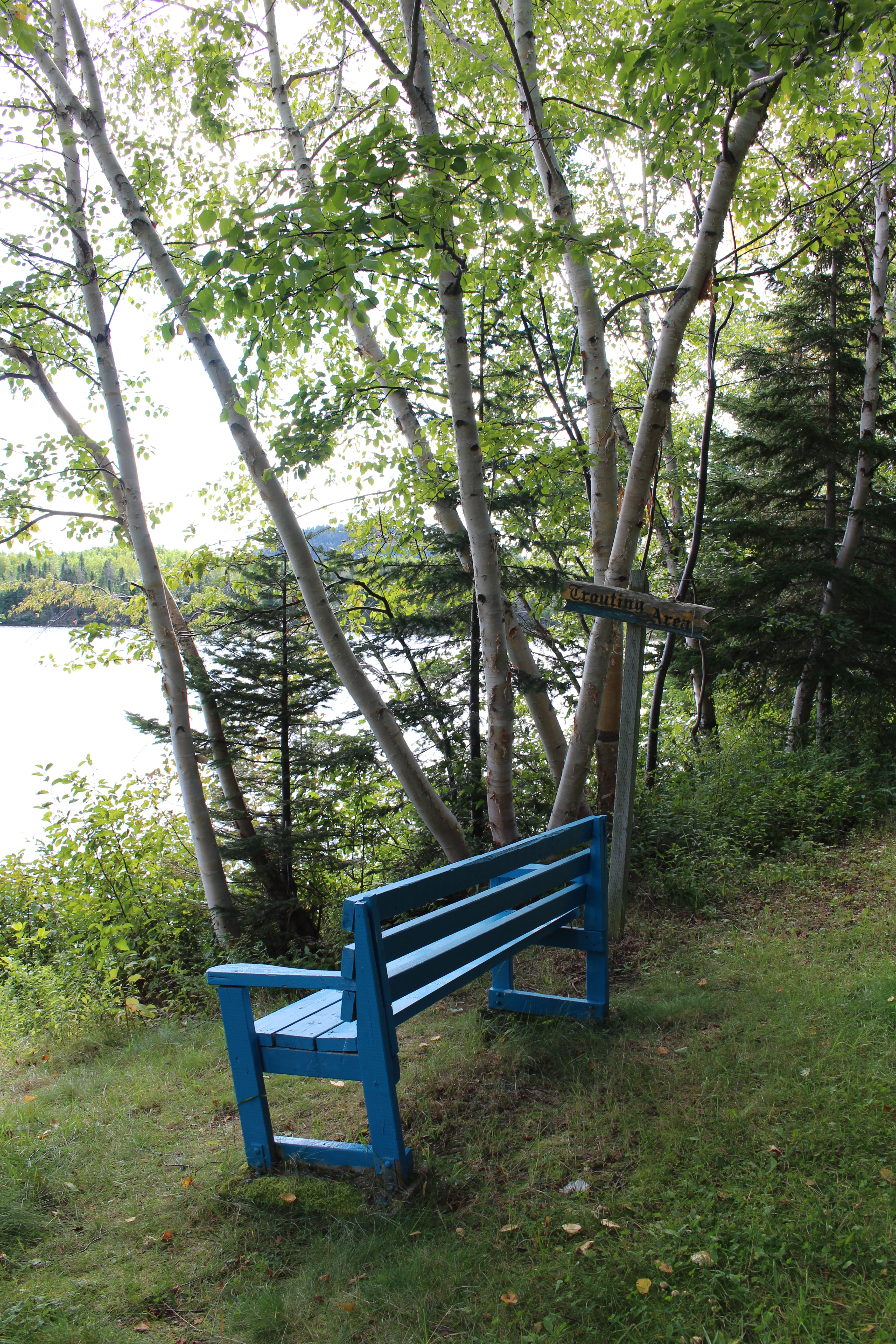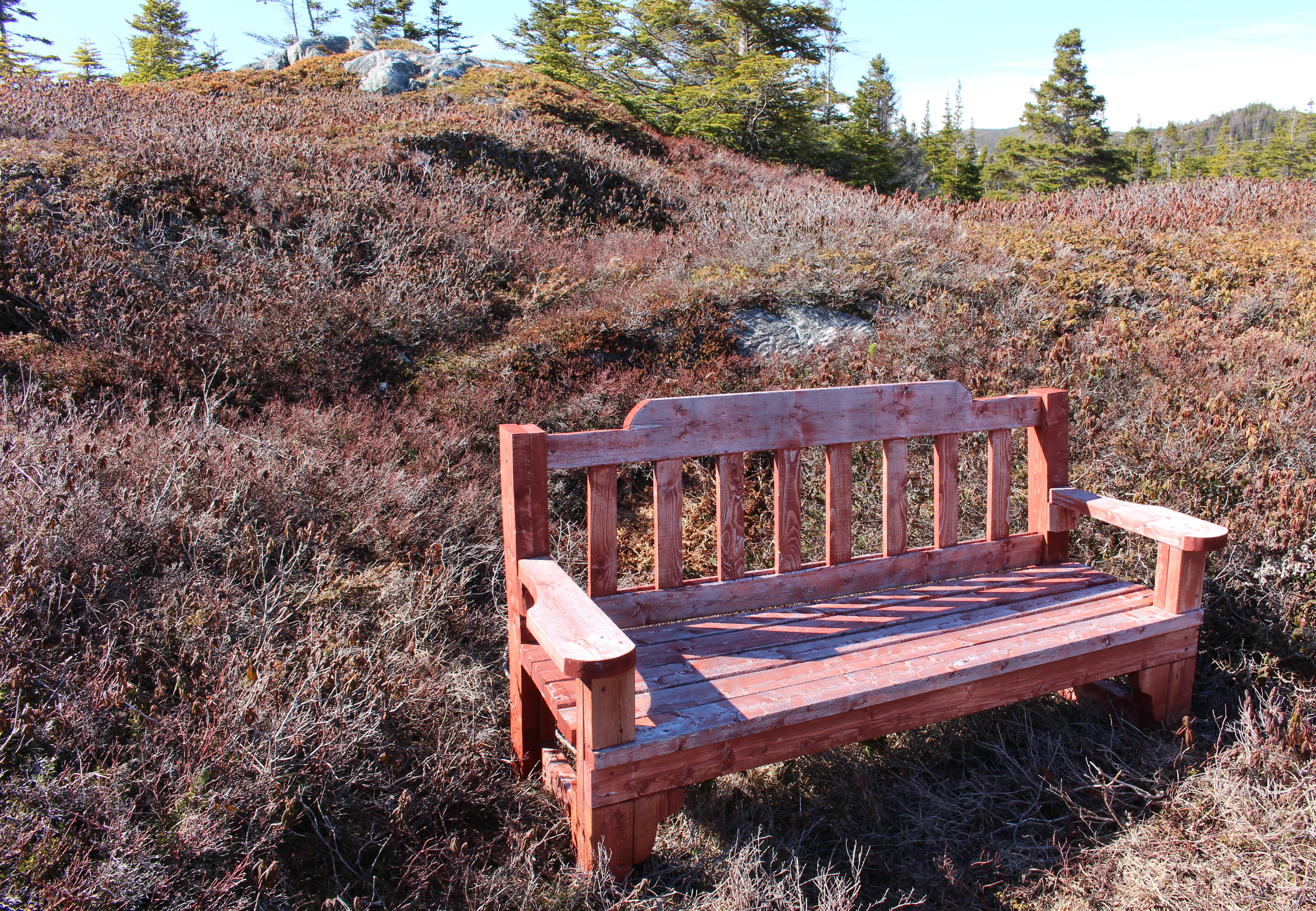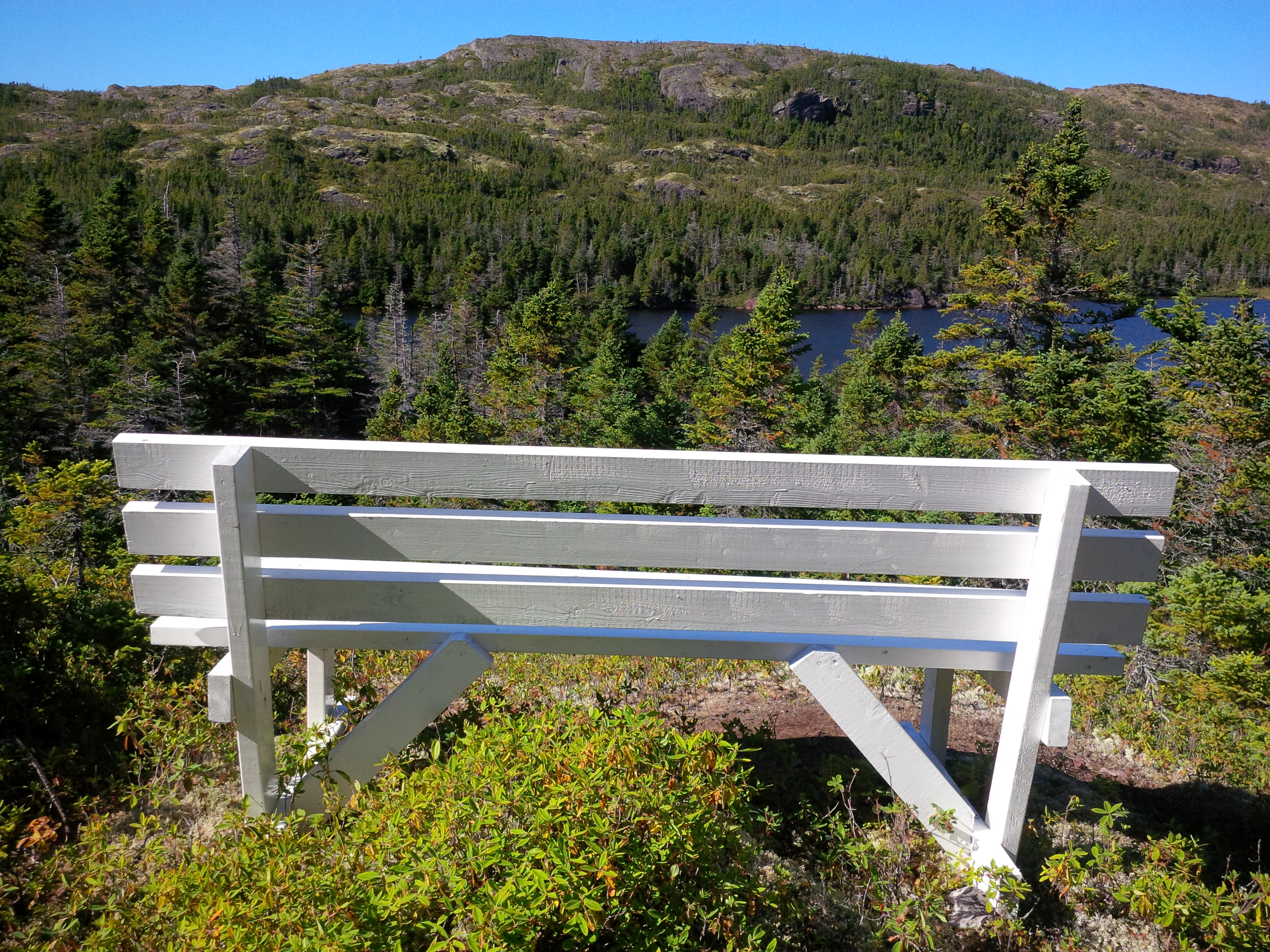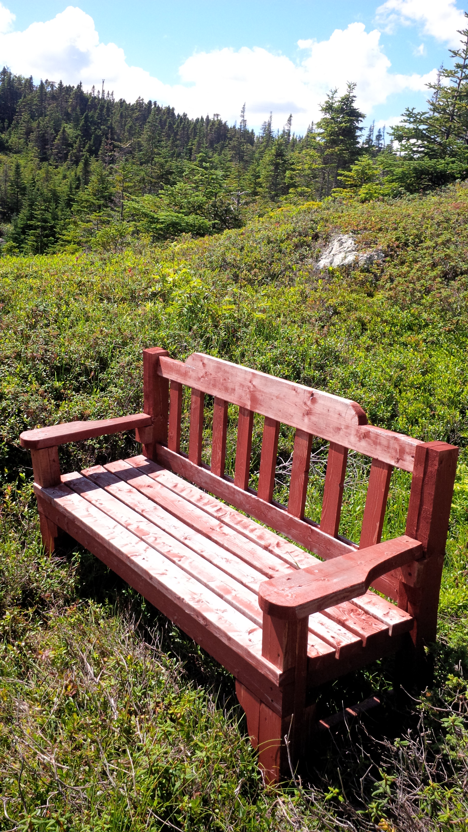 I am at times astounded, as I travel and hike through Newfoundland, at the benches, seats and picnic tables I find, often in the most unexpected of places. They seem to have this knack for knowing exactly where to place them, the importance of just taking in a view, that rest is a priority, and that constant movement is not always right for us. Sure, they are there – to take in a sea view, a waterfall, the majestic Tablelands, or after a long climb on a walking trail. But sometimes they are brightly coloured just to cheer our hearts, or “happened upon” in the grips of overgrowth, and conjure up a forgotten past, which we have been allowed into, if just for a moment – the seats of serendipity.