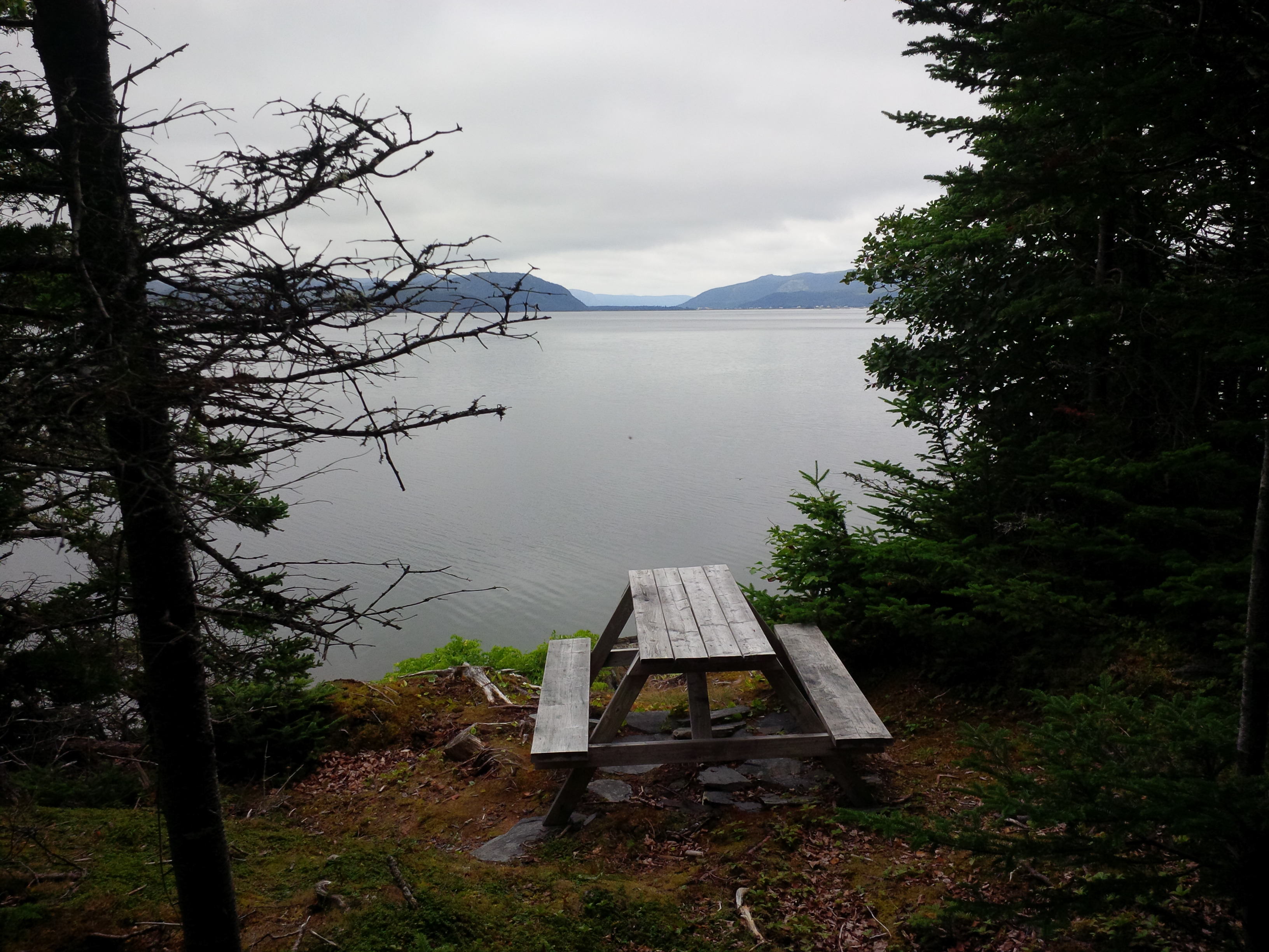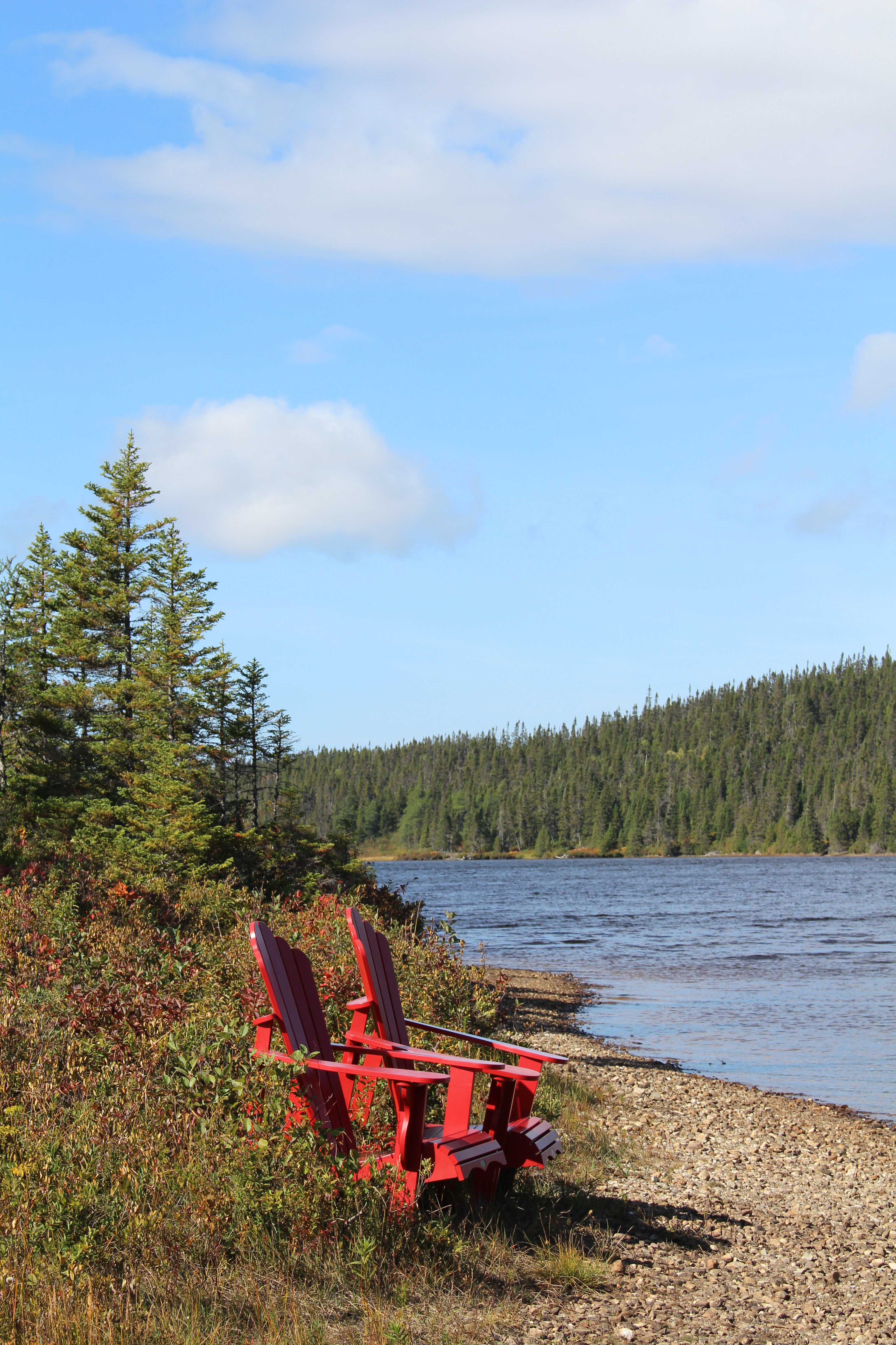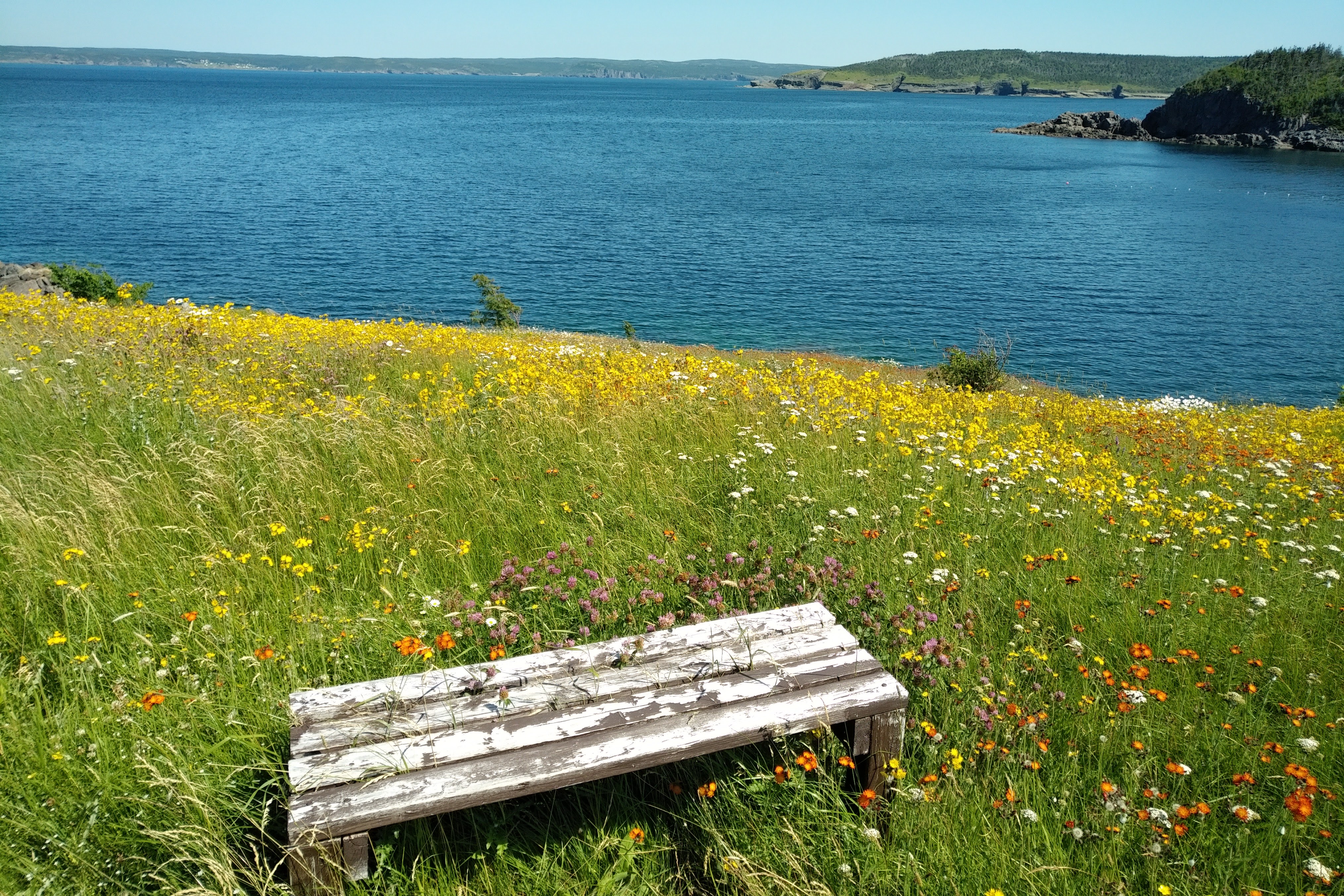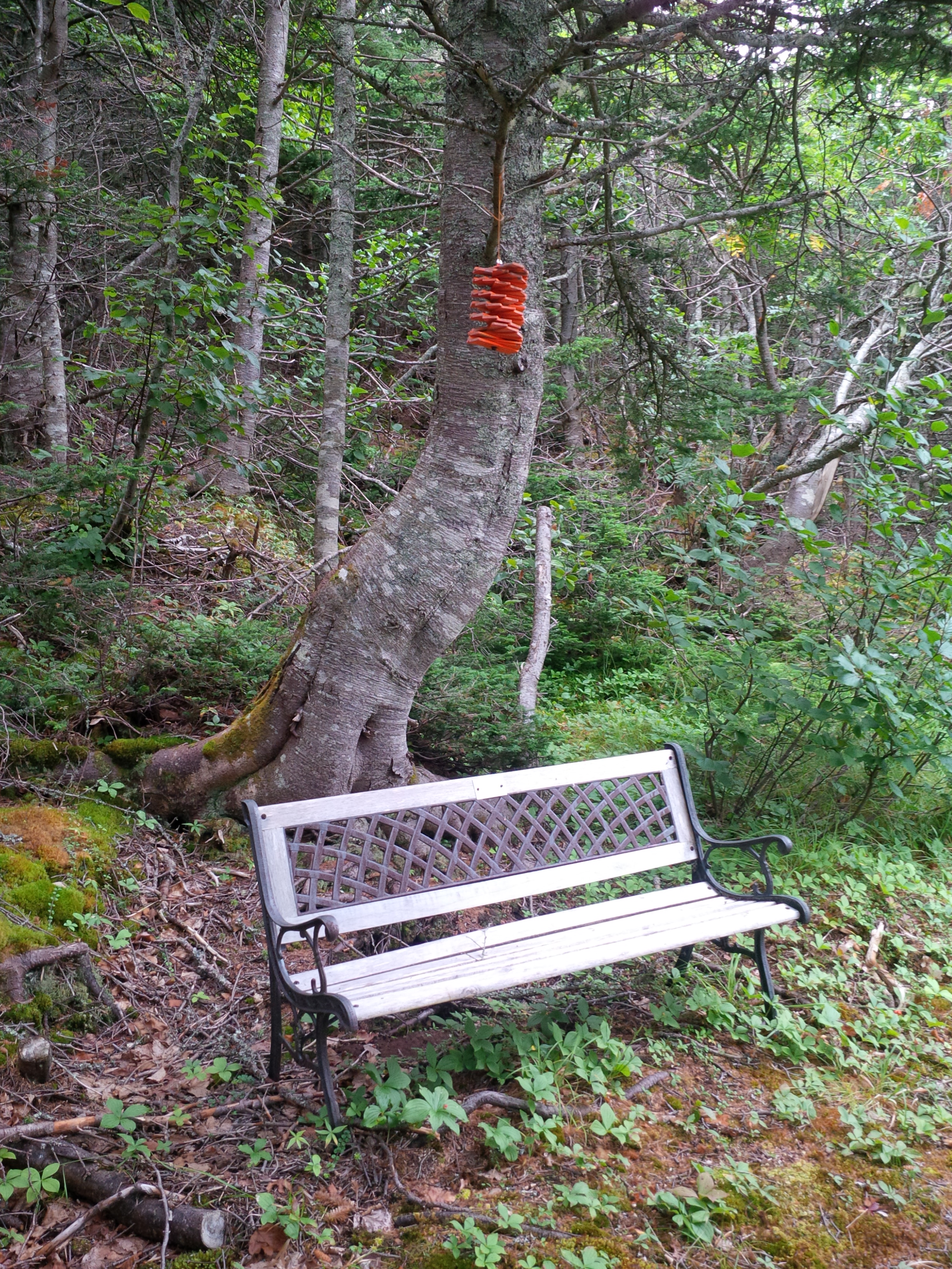 I am at times astounded, as I travel and hike through Newfoundland, at the benches, seats and picnic tables I find, often in the most unexpected of places. They seem to have this knack for knowing exactly where to place them, the importance of just taking in a view, that rest is a priority, and that constant movement is not always right for us. Sure, they are there – to take in a sea view, a waterfall, the majestic Tablelands, or after a long climb on a walking trail. But sometimes they are brightly coloured just to cheer our hearts, or “happened upon” in the grips of overgrowth, and conjure up a forgotten past, which we have been allowed into, if just for a moment – the seats of serendipity.