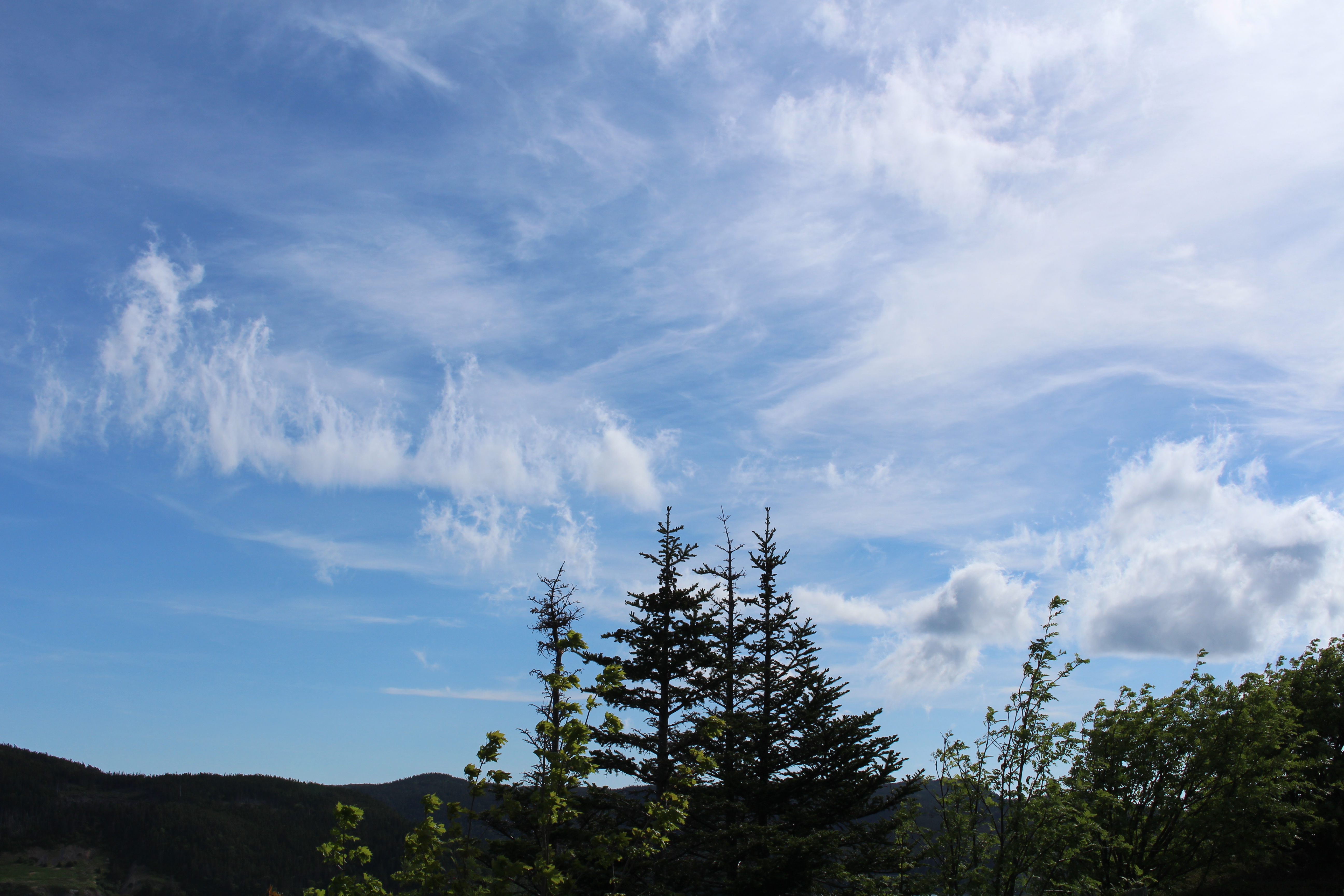Those who know me are aware that I think the skies of Newfoundland are the most picturesque of anywhere I have been. Sometimes the clouds are white and wispy, sometimes low and brooding, intoxicatingly voluminous, sweeping, turbulent, floating or filled with evening light. So many moods, and ever changing as we are. Remember to look up!